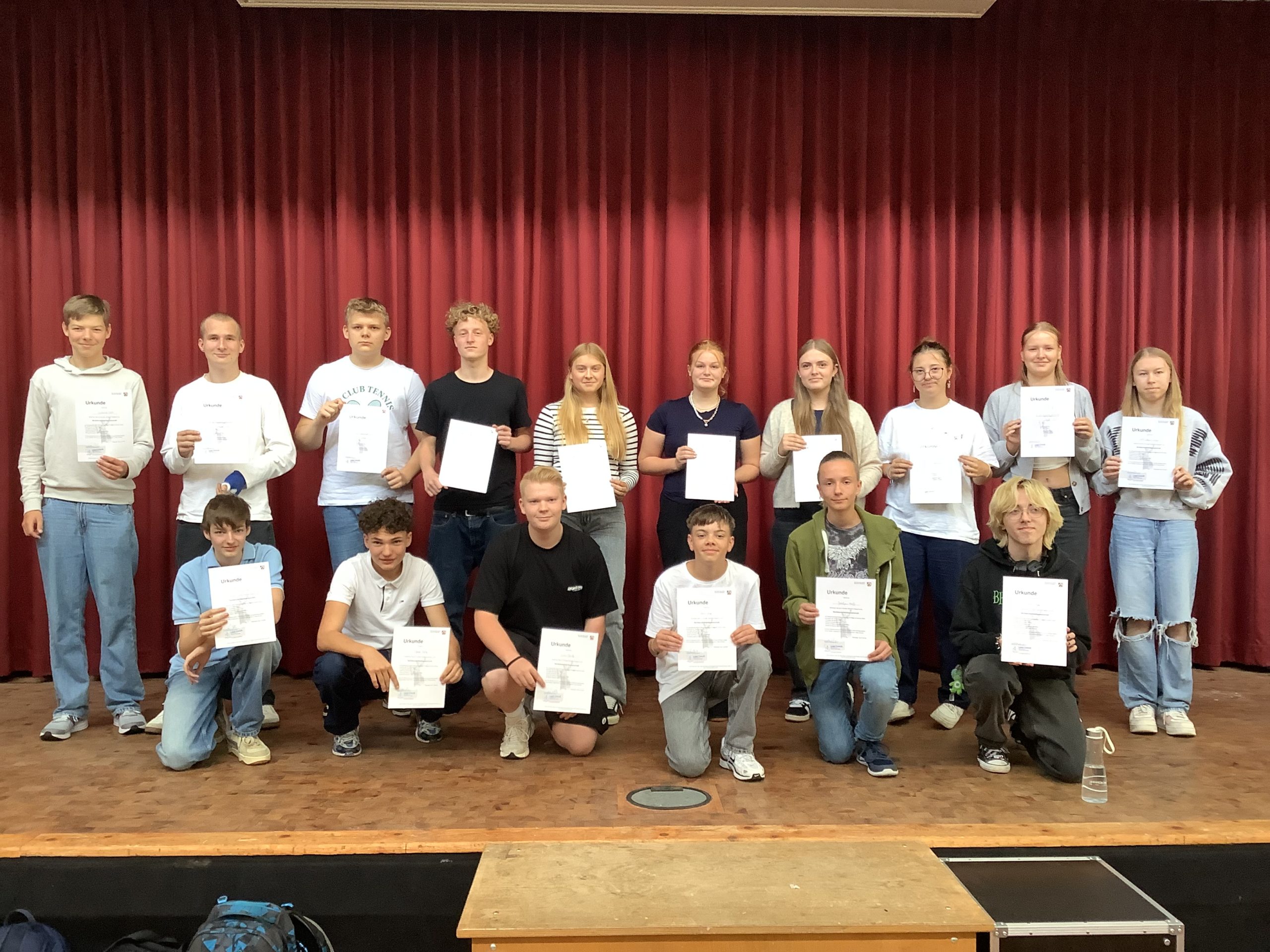 Schülerinnen und Schüler der 9. Klassen (2024/25) nahmen an der Rechtskunde AG teil. Unter der Leitung von Rechtsanwalt Jens Wölke setzten sie sich mit Themen des Rechtsalltags auseinander. Nun erhilten Sie ihre Teilnahmeurkunden.